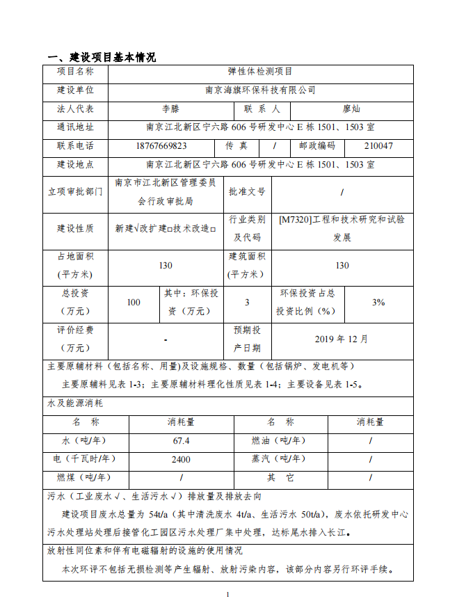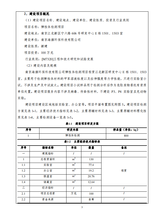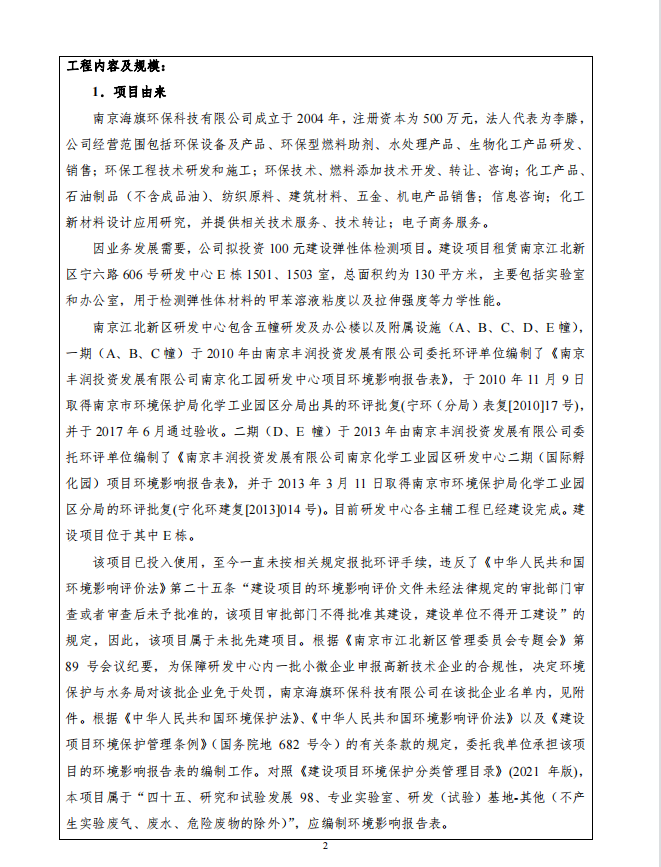 南京海旗环保科技有限公司弹性体检测项目环评表