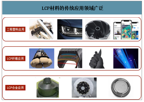 由于液晶高分子在力学性能、化学性能和信号传输方面具有良好的特性,所以在多个领域具有极强的应用价值。目前液晶高分子主要应用在工程塑料领域、薄膜领域和纤维领域。未来随着5G时代的到来,因液晶高分子具有优异的介电性能,会进一步拓展到高频封装领域、无人驾驶领域和可穿戴领域等。