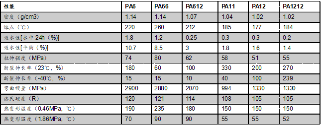 长链尼龙中,与其他尼龙材料相比,PA12具有很大优势,其优势在于吸水率最低、密度最低、熔点低、耐冲击、耐摩擦、耐低温、耐燃油、尺寸稳定性好、防噪音效果好等。PA12同时具有PA6、PA66和聚烯烃(PE、PP)的性质,做到了轻量化和物理化学性能上的结合,有性能上的优势。