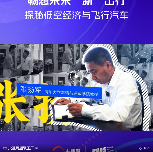 央视网《超级工厂》:清华大学的张扬军教授介绍“飞行汽车”